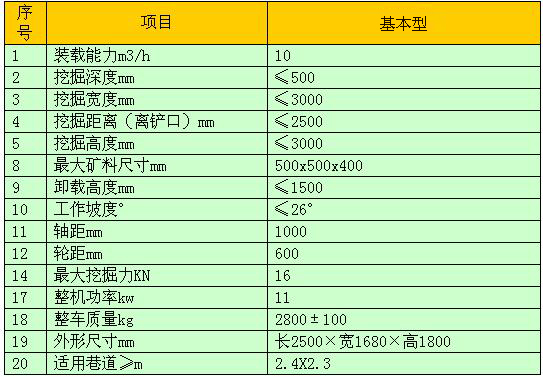 銳坤公司研發的國內首創的XLWD-10軌道式斜井挖碴機,具有軌道行走、挖掘采集、回轉、裝載功能。其中挖掘采集功能由二個多路閥手柄操縱控制,大臂起落、小臂伸縮和扒斗轉動通過往復式雙作用液壓缸來實現。大臂可上升、下降、左右回轉,扒掘采集、裝料、卸料由全液壓控制。整車液壓系統由一臺15KW電機為動力帶動齒輪泵,液壓油通過齒輪泵輸入多路換向閥內,通過操縱手柄實現對液壓裝置—油缸的控制。整車電器系統采用接觸器、按鈕控制,具有漏電保護功能。防爆型全部采用礦用隔爆型電器設備。